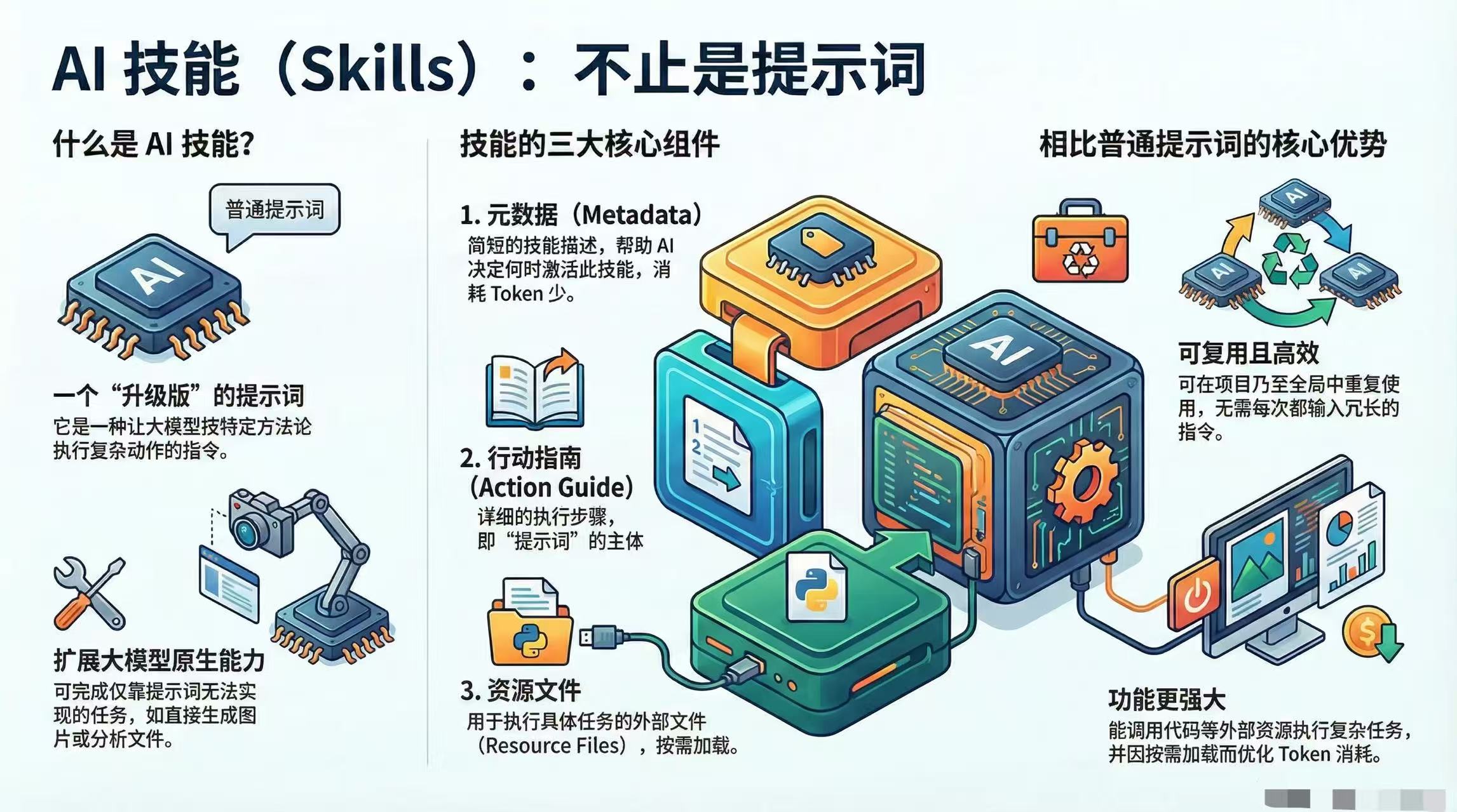 Skills matter because they help AI move beyond “answering questions” and toward “executing workflows.”